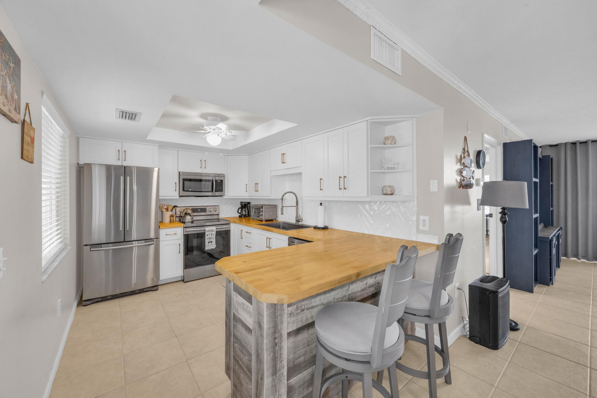 Welcome to your slice of paradise in Ocean Village! This beautifully updated 2-bedroom, 2-bath condo in the highly desirable Catamaran II offers 1,184 sq ft of living space and is being sold fully furnished and turnkey, making it ideal for seasonal use, full-time living, or investment. The light and bright interior features tile flooring throughout, a spacious open-concept living and dining area, and an updated kitchen with stainless steel appliances, ample cabinetry, and a breakfast bar perfect...Welcome to your slice of paradise in Ocean Village! This beautifully updated 2-bedroom, 2-bath condo in the highly desirable Catamaran II offers 1,184 sq ft of living space and is being sold fully furnished and turnkey, making it ideal for seasonal use, full-time living, or investment. The light and bright interior features tile flooring throughout, a spacious open-concept living and dining area, and an updated kitchen with stainless steel appliances, ample cabinetry, and a breakfast bar perfect for entertaining. The primary suite includes a private en-suite bath with a separate shower, while the guest bedroom and second full bath provide comfort and privacy for visitors. Step out to the screened patio and enjoy peaceful tropical surroundings. This 4th-floor unit is located in a gated, resort-style community offering an unmatched list of amenities, including an executive golf course (included in dues), multiple pools, tennis, pickleball, bocce ball, shuffleboard, clubhouse, on-site restaurant/caf?, beach access, and more.